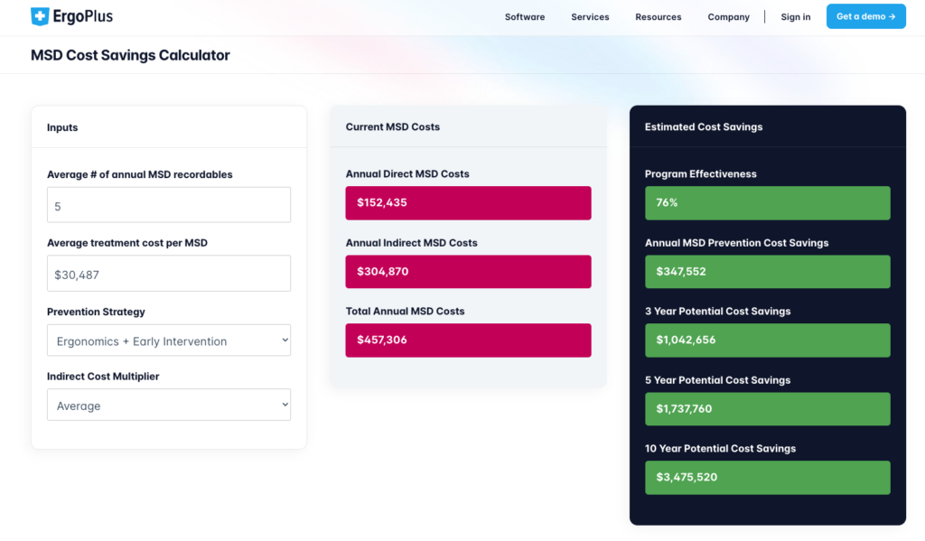 Done well, ergonomics and MSD prevention programs provide a tremendous return on investment. The MSD Cost-Savings Estimator is an easy-to-use tool to help you estimate your potential ROI and garner the resources you need to get started.