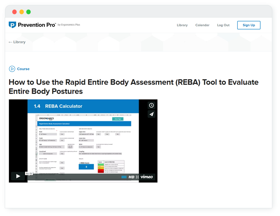 In this technical training course you will learn how to use the REBA assessment tool to evaluate whole-body postural risks.